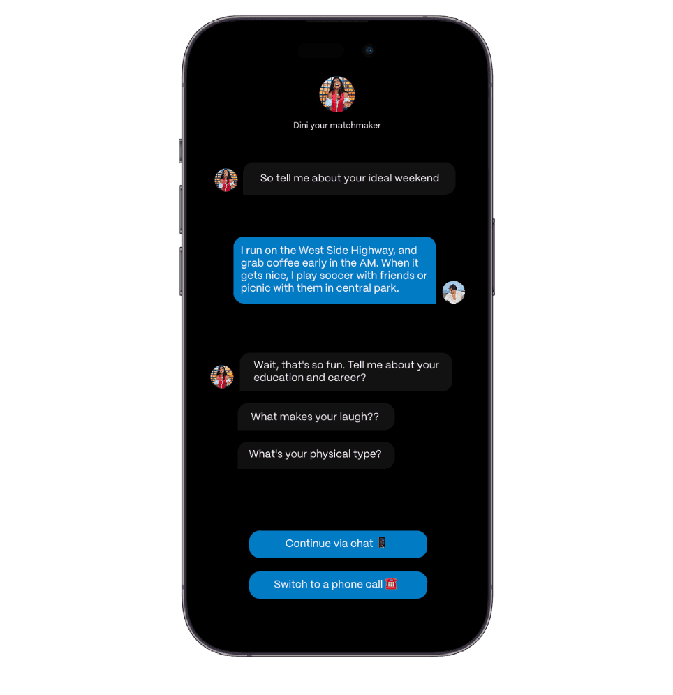 Your matchmaker searches the SITCH community to find someone who aligns with what you're looking for.