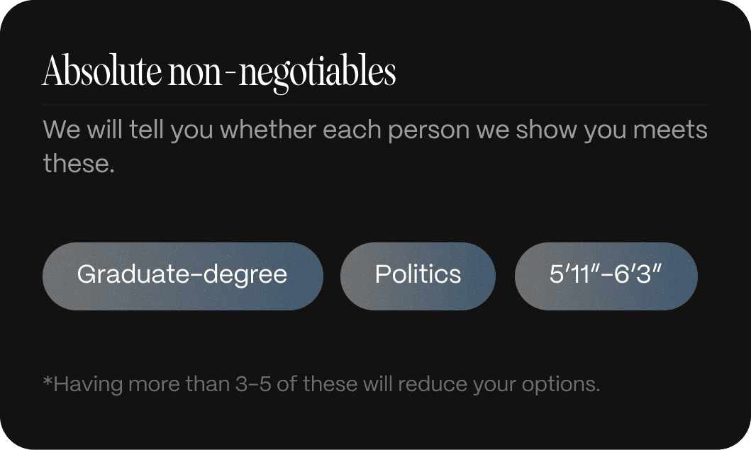We show you 3-5 curated profiles a week, instead of 80-100 profiles a day.